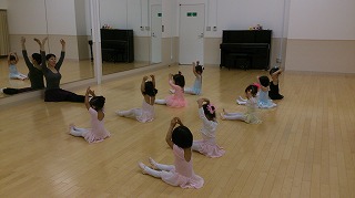 ストレッチは少し長めにやりました。バレエには身体の柔軟性が必要です。