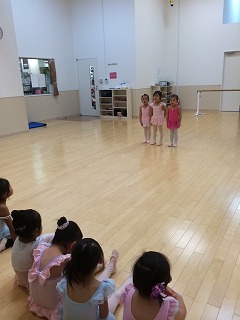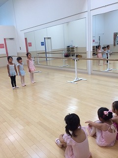 センターレッスンでのパドブレ(足を重ねてつま先立ちで進む)は、