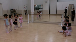 みなさんには「バーレッスンをする為に、フロアではきちんと並び
