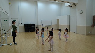 私が鏡の前に立ち、ご挨拶の最初のポーズ(脚は1番ポジションで、