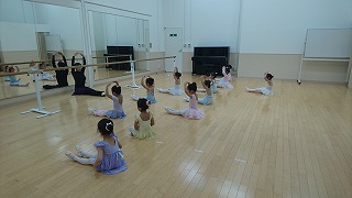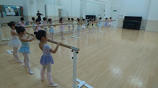 バーレッスン、りんちゃん・りのちゃん、準備も早くさっときれいな姿勢ができます。