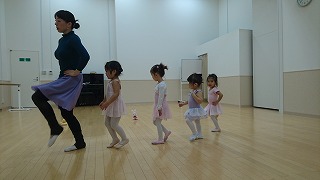 縦一列に並びスキップを。先週より少し進歩しましたね。