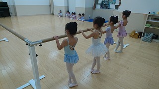 フロア、第一アラベスクのポーズは殆どのお子様がグラグラしてしまいます。