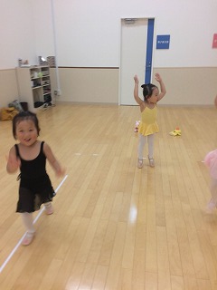 フロアでは、れいかちゃんは初めてステップを3つもやりました!
