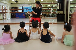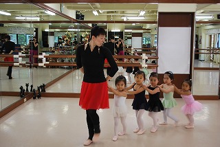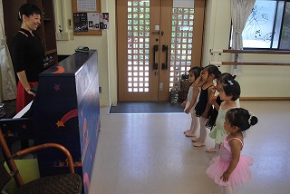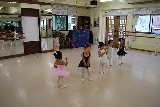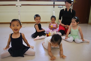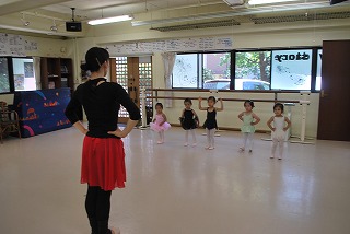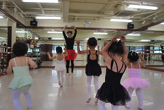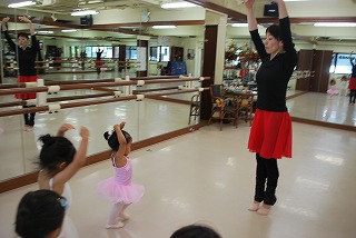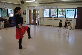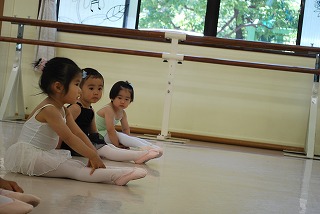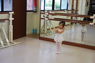 つま先はポワント(つま先を伸ばした状態)で準備ですよ。