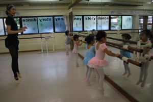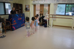 バーレッスンでは、バーについて立つことに少しずつ慣れてきていますよ。