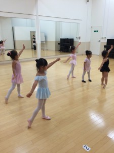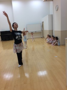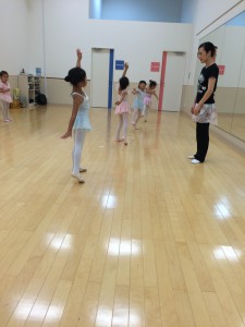 ルルベ(つま先立ち)をしっかり見せることがコツです。