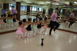 動物ステップでは、きりんさんになってお水をゴクゴク飲んだりネコさんに変身してスタジオ隅の黒猫さんにご挨拶したり(^-^)