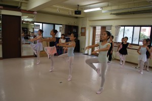 つま先をしっかり伸ばすこと、アームスの形を整えること、細かいところを気をつけます。