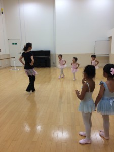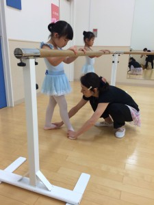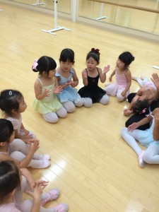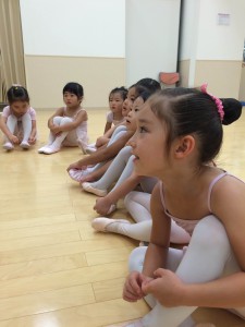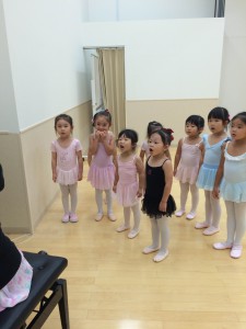 年中、年少さんはバーレッスンの内容を覚えることが目標です。