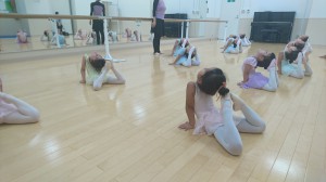 さて、バーレッスン。年長さん年中さんそれぞれに目標があります。