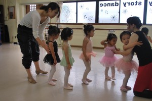 以前泣いてたのが嘘の様に落ち着いてレッスンしているあかりちゃん。きちんと並んで待っていらっしゃいました。