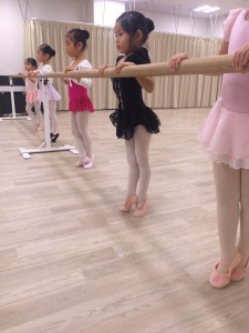 バーレッスン。今日はみなさん間違えずにできましたね。音をかける際「お願いします!」と言う事で気持ちも引き締まりますね。