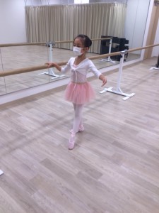 今日から新しく、お顔や胸の角度をつけてバーレッスンしました。