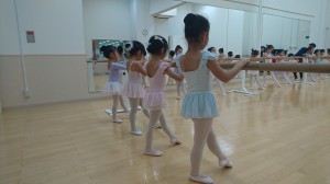 エシャッペを細かく見ました。しっかりプリエで床を踏んだ後は足を滑らせながら一気に開きます。ピョンピョンと飛ばないように。
