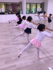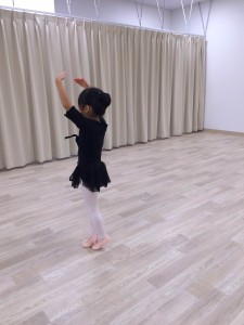 デュミプリエは1・2でお膝を曲げ、3・4で伸ばします。ピョコタンと早く曲げ伸ばししません。