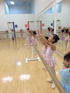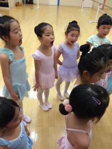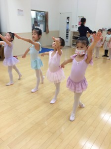 バーレッスン、年中さん達は今日は少し集中が出来ていませんでした。