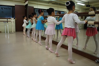 そして、振り付けに出てくる「エシャッペ」を、バーを持って確認しました。