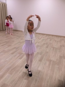 さきちゃん、タンジュがとてもきれいに出来ていました。1番ポジションを崩さず膝もつま先も伸びていて(^-^)
