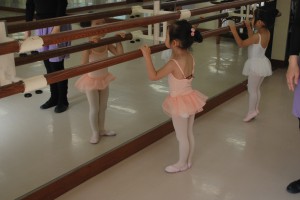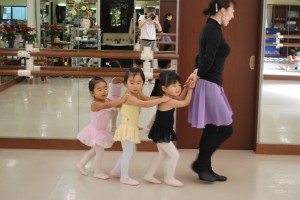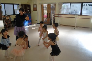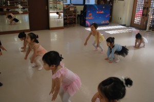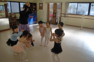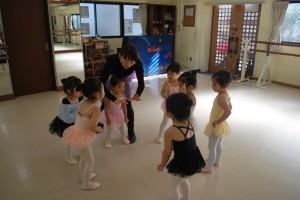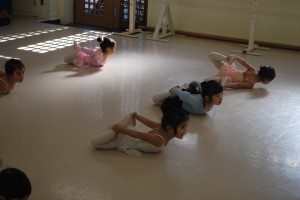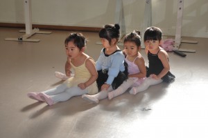発表会で見上げたきれいなお姉さん達と一緒にレッスンですよ〜。
