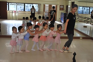 並ぶ、前のお友達が出たらずれる、まだ少し難しいですが、