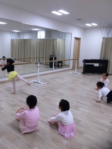 さて、バーレッスン。あかねちゃんは久々のレッスンですね。