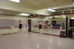 3人ともポアントでプリエやルルベをするとどうしても体幹の引き締めが抜けてしまいます。
