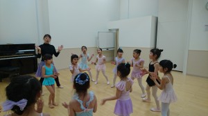 フロアを始める前に年中さんとお約束しました。アシスタントの先生から注意されなくてもご自分から準備をする事そしておしゃべりをしないこと。