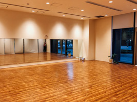入って進んでいただくと木目調に「follow」のロゴがございます。こちらが豊洲教室のスタジオです